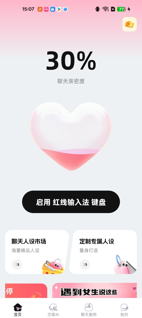 红线输入法是一款具备独特有趣话术聊天恋爱教学服务应用软件;